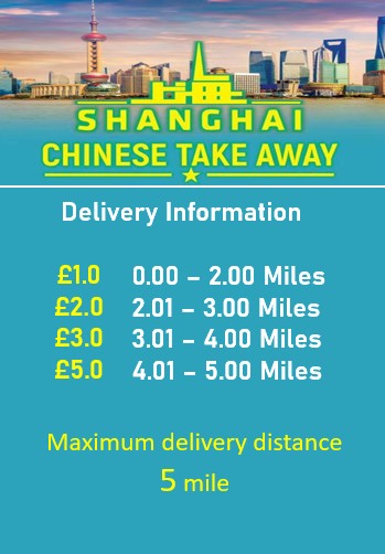 Shanghai Takeaway Chinese Takeaway serves variety of delicious Chinese dishes. We’re passionate about delivering hot, great tasting, freshly prepared Chinese food to our customers